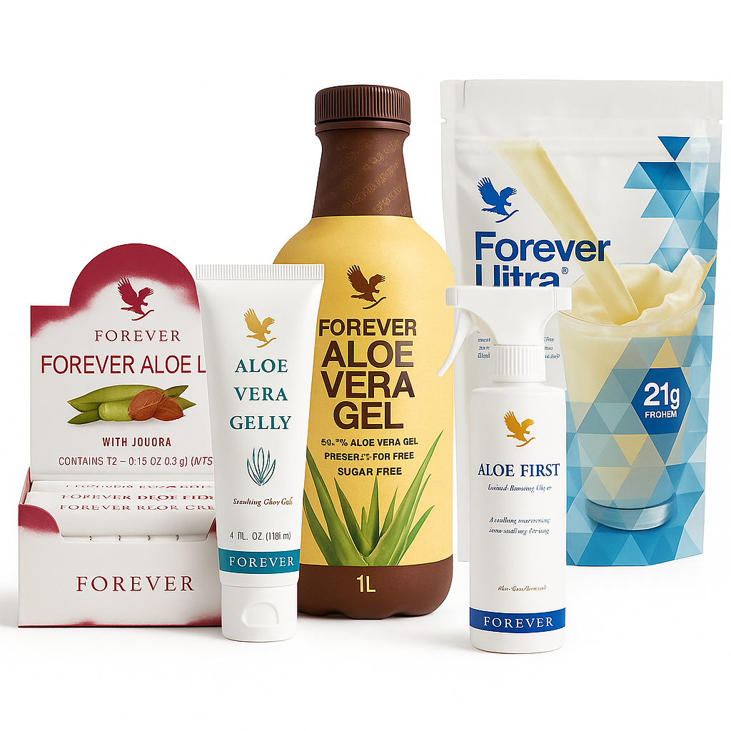 Die beliebtesten Forever Produkte – voll mit der Kraft der Aloe Vera. Sanft zur Haut, reich an wertvollen Inhaltsstoffen und ideal für deine tägliche Pflege. Ob für dein Wohlbefinden oder deine Hautroutine: Natürlich, effektiv und genau das, was du von Forever liebst.